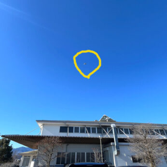 黄色マーク内に飛行中のドローン。