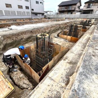 11月中旬の鉄骨建方に向け基礎工事中です。