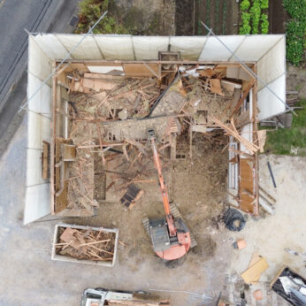 2025-11-17 解体中 by 渡邊 隆弘 「落書き大会」から数日。既設の建屋を解体中です。 住み慣れた我が家の解体撤去は一抹の寂しさがあると思いますがきっと、その数倍「38ハウス」が造られていくワクワクで一杯になるでしょう。