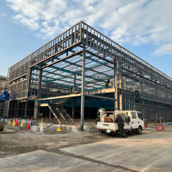 「笠松のオフィス」の鉄骨建て方から2週間が経過しました。