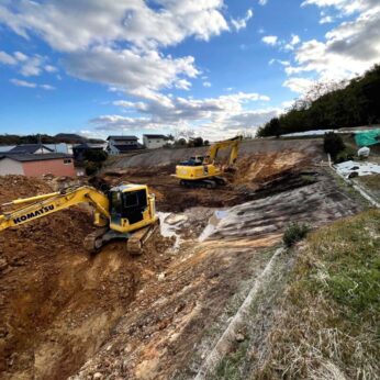 大きな重機が2台入り、採掘現場の様相を呈しています。