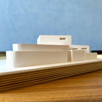 重なる水平ラインと曲面ファサードが印象的な住宅です。