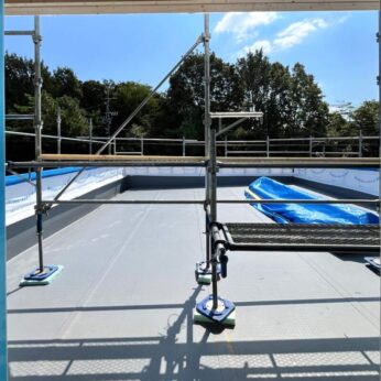 まるで水族館の様な写真ですが、シート防水を施工中です。