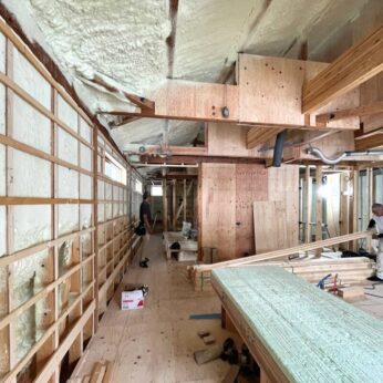 瓦屋根を撤去して、新しい屋根下地まで出来ました。